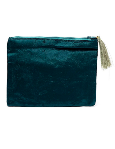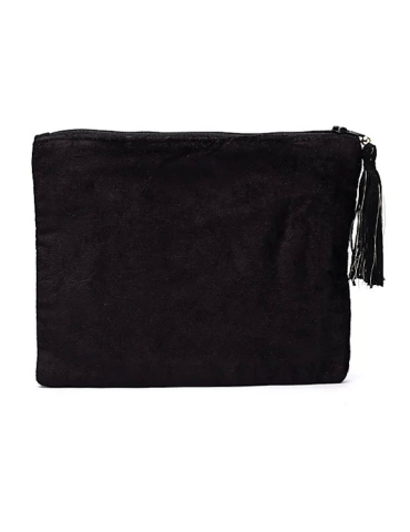 Borsina in morbido velluto con ricami delicati e perline ornamentali Dimensioni: 20x15 cm Provenienza: India Ideale per riporre piccoli oggetti essenziali. La texture in morbido velluto e la nappina decorativa sulla cerniera aggiungono un tocco elegante alla praticità dell'oggetto