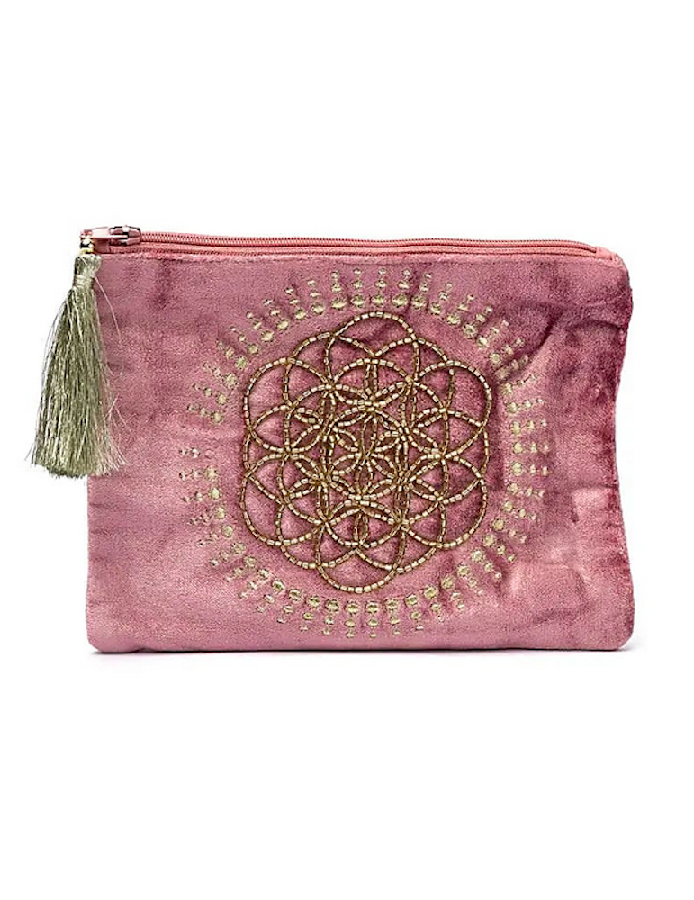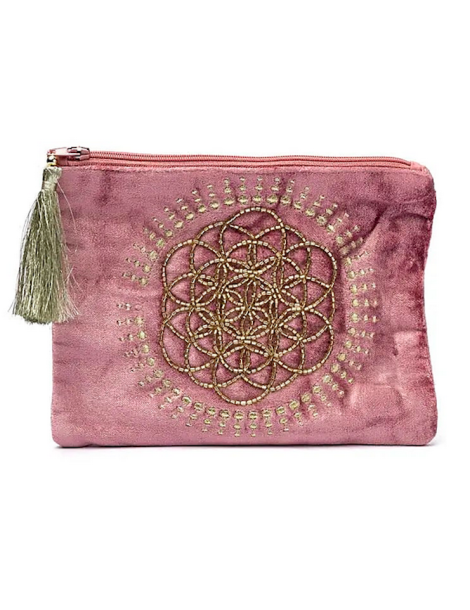 Astuccio in velluto rosa antico con cerniera e Fiore della vita