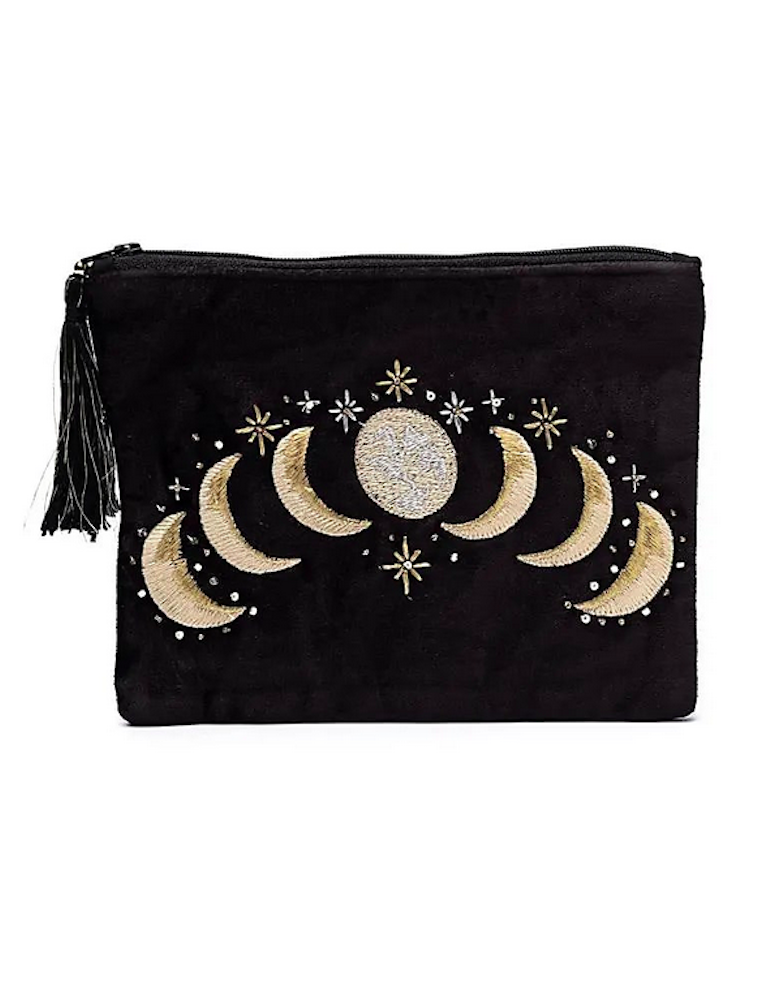 Borsina in morbido velluto con ricami delicati e perline ornamentali Dimensioni: 20x15 cm Provenienza: India Ideale per riporre piccoli oggetti essenziali. La texture in morbido velluto e la nappina decorativa sulla cerniera aggiungono un tocco elegante alla praticità dell'oggetto