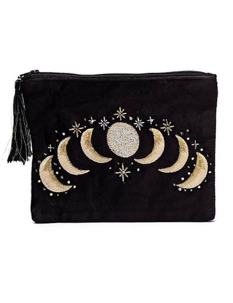 Borsina in morbido velluto con ricami delicati e perline ornamentali Chiusura con cerniera e nappina decorativa Dimensioni: 20x15 cm Provenienza: India Compatti, con dimensioni di 20x15 cm, sono ideali per riporre oggetti essenziali come penne e matite, trucchi, articoli da toilette e altri piccoli oggetti. La texture in morbido velluto e la nappina...