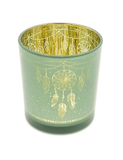 Candela votiva alla stearina profumata con oli essenziali: Cannella, Chiodi di garofano, Salvia Misure: cm 4.5 x 4