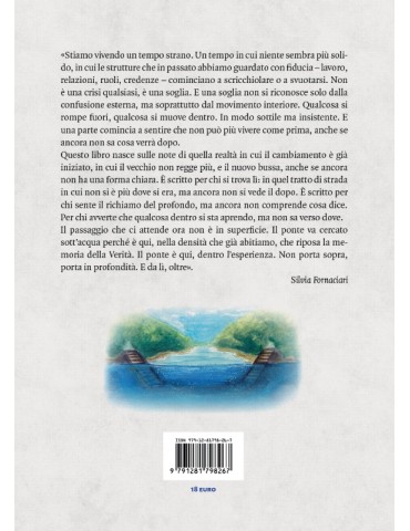 La via del ponte sott’acqua è un viaggio di sette settimane dentro il cambiamento, un percorso che accompagna chi sente di trovarsi su una soglia: non più nel vecchio mondo, ma ancora senza forma chiara del nuovo. Attraverso capitoli che alternano riflessioni e pratiche, il libro invita a riconoscere il movimento interiore che si cela dietro la crisi esterna e a scoprire che il vero passaggio non è verso l’alto, ma attraverso il profondo. Il testo esplora le “densità” della coscienza, dalla materia primordiale fino al ritorno all’Uno, offrendo chiavi per comprendere il senso delle esperienze che viviamo oggi come individui e come collettività. Ogni settimana propone domande interiori, gesti concreti e rituali semplici, trasformando la lettura in un compagno di viaggio reale, più che in un manuale da consultare. È un invito a fermarsi, ad ascoltare, a lasciarsi guidare dal cuore e dalla memoria del Sé. Non promette scorciatoie né risposte immediate, ma apre varchi di consapevolezza che possono emergere tanto nella ferita quanto nella gioia. È un libro per chi percepisce che il mondo sta cambiando e vuole attraversare questa soglia con presenza, fiducia e curiosità. Un ponte da percorrere sott’acqua, là dove la verità riposa, pronta a risvegliarsi.
