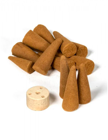 Coni d’incenso naturali con oli essenziali che creano una fragranza morbida, con portacono in ceramica.