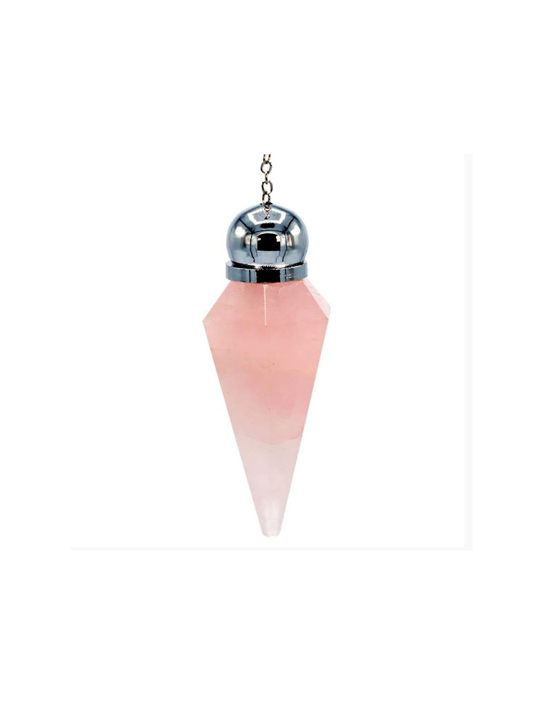 Pendolo in Quarzo Rosa sfaccettato e appuntito