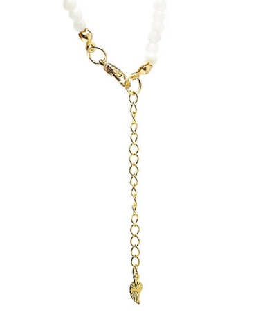 Una collana delicata con perline in pietra naturale da 3 mm lucidate e un ciondolo dorato a forma di luna, simbolo di intuizione, equilibrio emotivo ed energia femminile Dotata di una catenina (di circa 37 cm) regolabile di ±5 cm, è adatta a diverse lunghezze