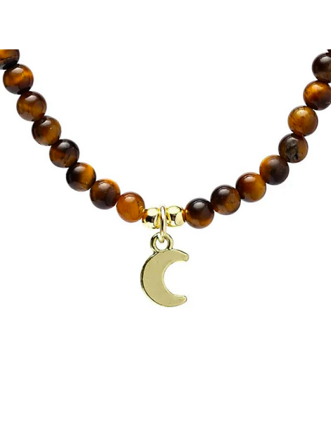 Una collana delicata con perline in pietra naturale da 3 mm lucidate e un ciondolo dorato a forma di luna, simbolo di intuizione, equilibrio emotivo ed energia femminile Dotata di una catenina (di circa 37 cm) regolabile di ±5 cm, è adatta a diverse lunghezze