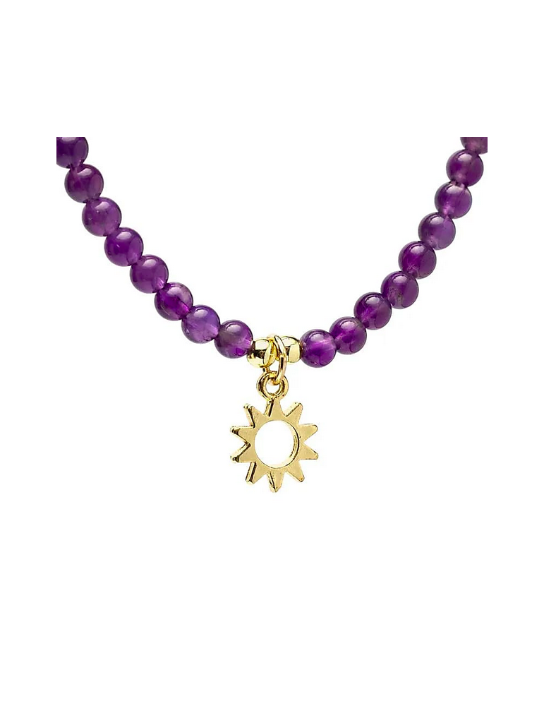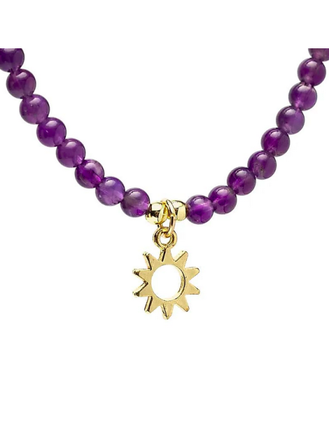 Una collana delicata con perline in pietra naturale da 3 mm lucidate e un ciondolo dorato a forma di sole